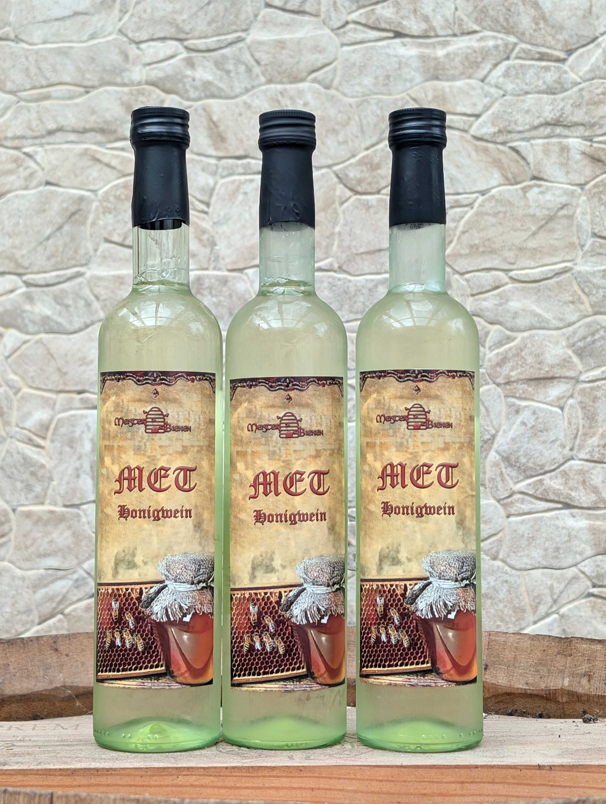 Ebenfalls in kleinen Chargen stelle ich selbst Honigwein her. Den klassischen Met produziere ich recht lieblich. Er ist im Sommer kalt und im Winter erwärmt sehr zu empfehlen.