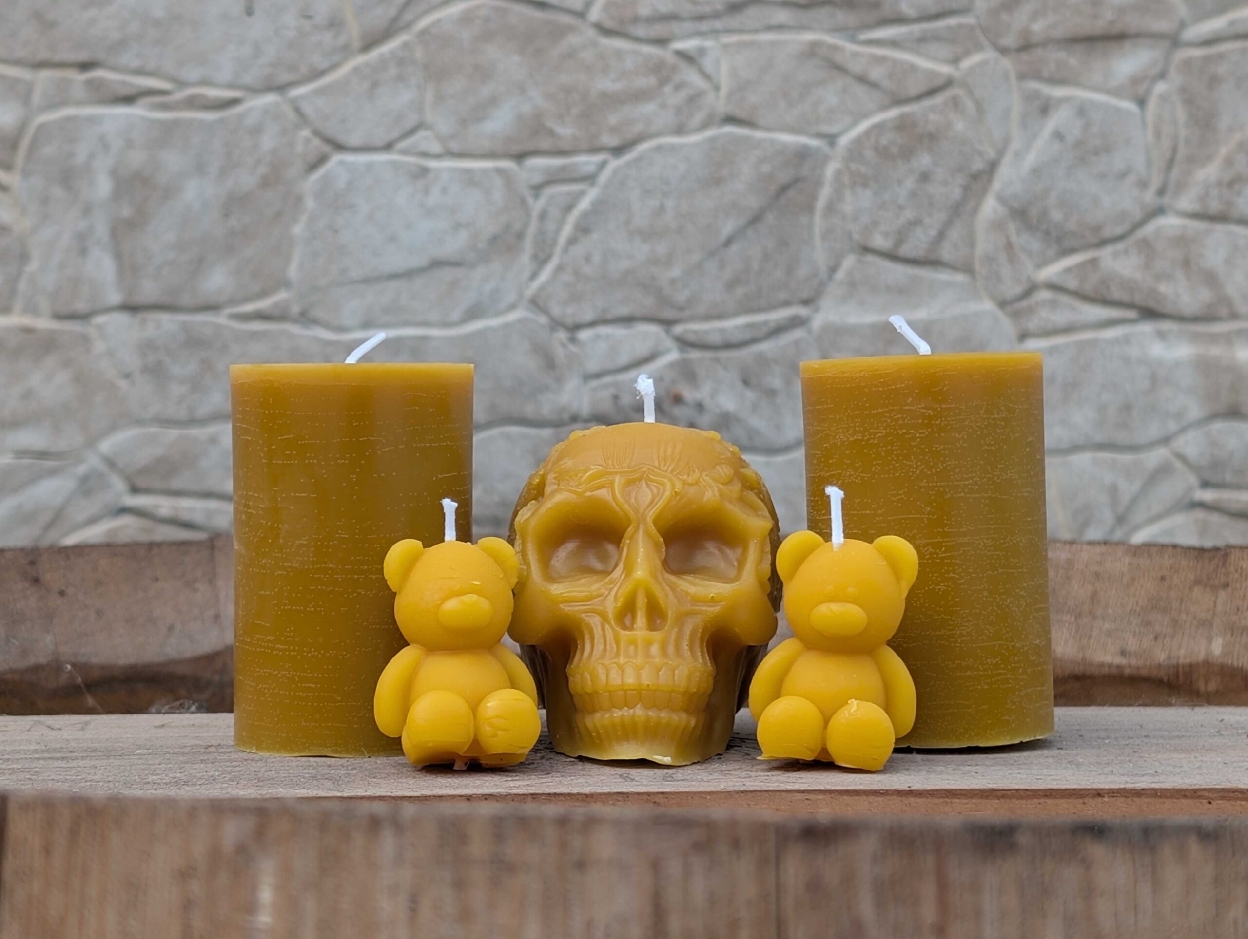 Mein Wachs kläre ich dreifach und gieße daraus Kerzen in verschiedenen Formen.